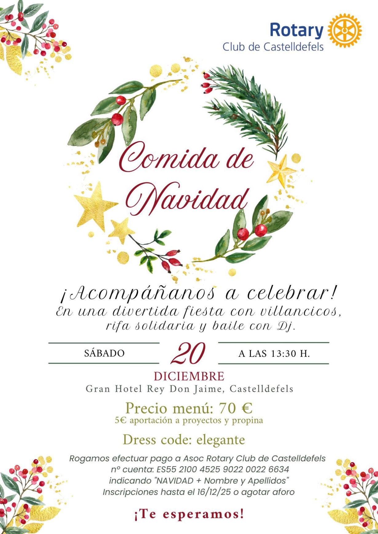Nos complace invitaros a la Comida Anual de Navidad del Rotary Club de Castelldefels, un encuentro especialmente preparado para celebrar estas fechas tan significativas y compartir un momento de convivencia, alegría y espíritu solidario.